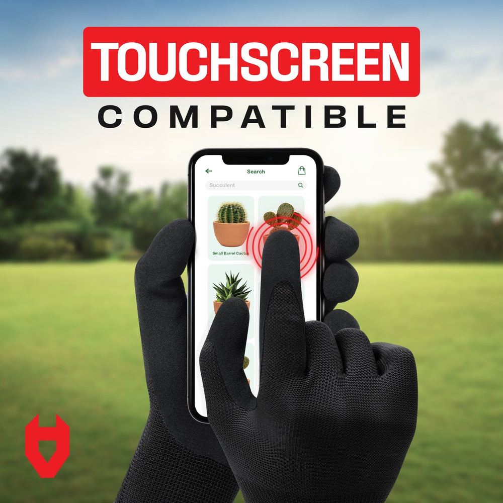 - TOUCHSCREEN FINGERTIPS — Text, swipe, and type without taking your outdoor gloves off. And when you're done for the day, just toss these weeding gloves in the wash (68°F)—no need to hand-wash. Thanks to their quick-drying fabric, they’ll be ready for round two in no time.