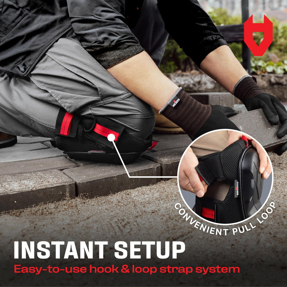These knee pads are built to do the job — and stay put while you do it. The dual-strap system combines a secure hook-and-loop closure with flexible neoprene for comfort that holds. The top strap features a silicone grip to prevent slipping, while two thinner back straps reduce sweat and pressure behind the knee.