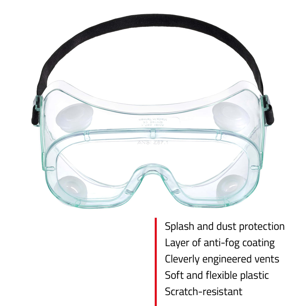- Durable safety lab goggles you can wear all day long — Crafted with reinforced Polycarbonate lenses, these splash goggles protect your eyes from dust particles, liquid splashes, and industrial debris like wood chips and sparks. ANSI Z87.1 Approved.