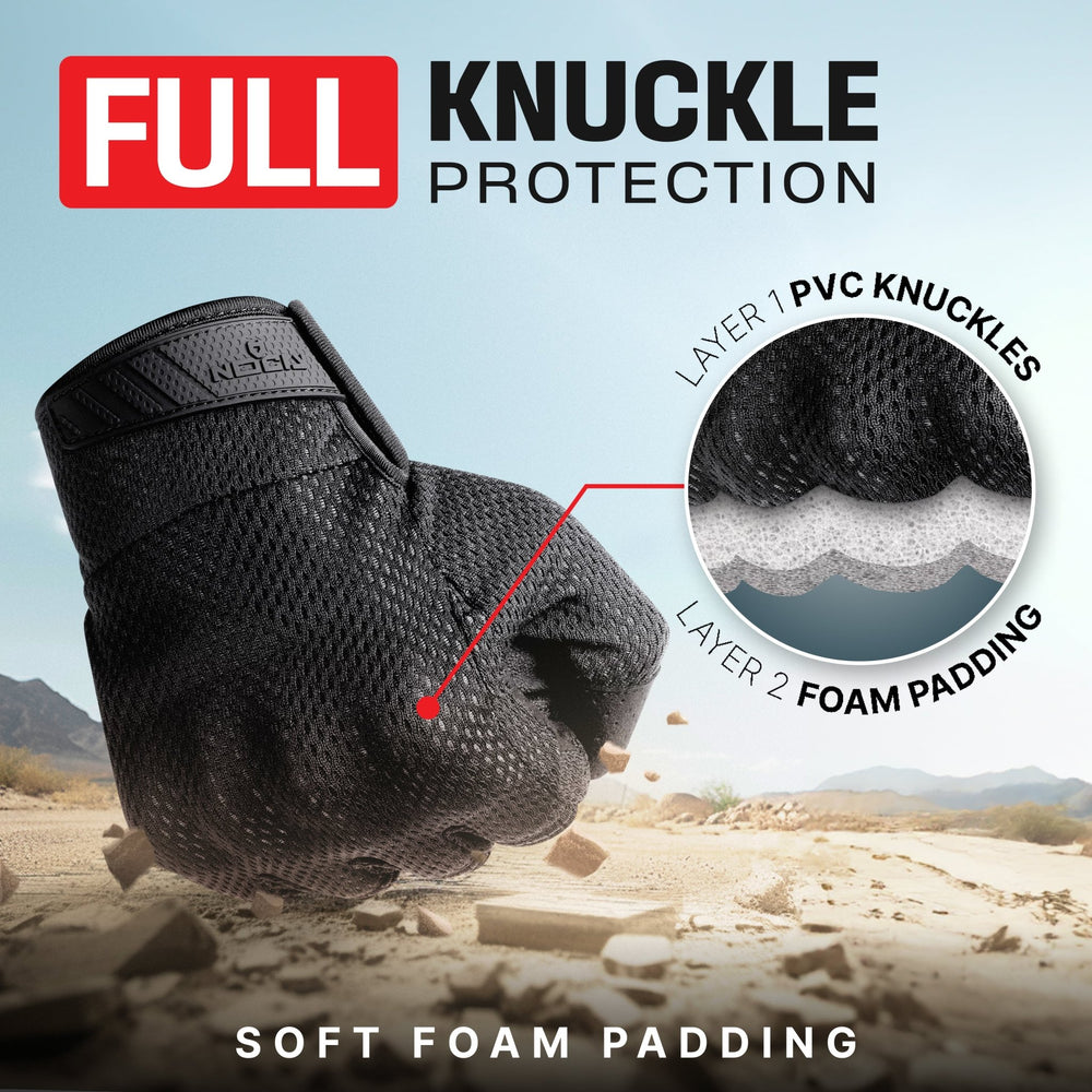 - TOTAL PROTECTION - Enjoy complete protection without compromising agility and tactile sensitivity. These hard knuckle gloves are equipped with PVC knuckle guards and just the right amount of cushioning to shield your hands from cuts and bruises during action-packed activities.