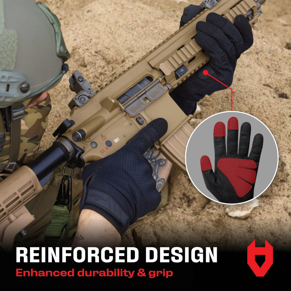 - BUILT TO LAST – Experience long-lasting durability and a firm grip with these airsoft gloves for men, featuring reinforced palms and fingertips with nylon thread. Equipped with UV protection, these tactical shooting gloves are designed for peak performance.